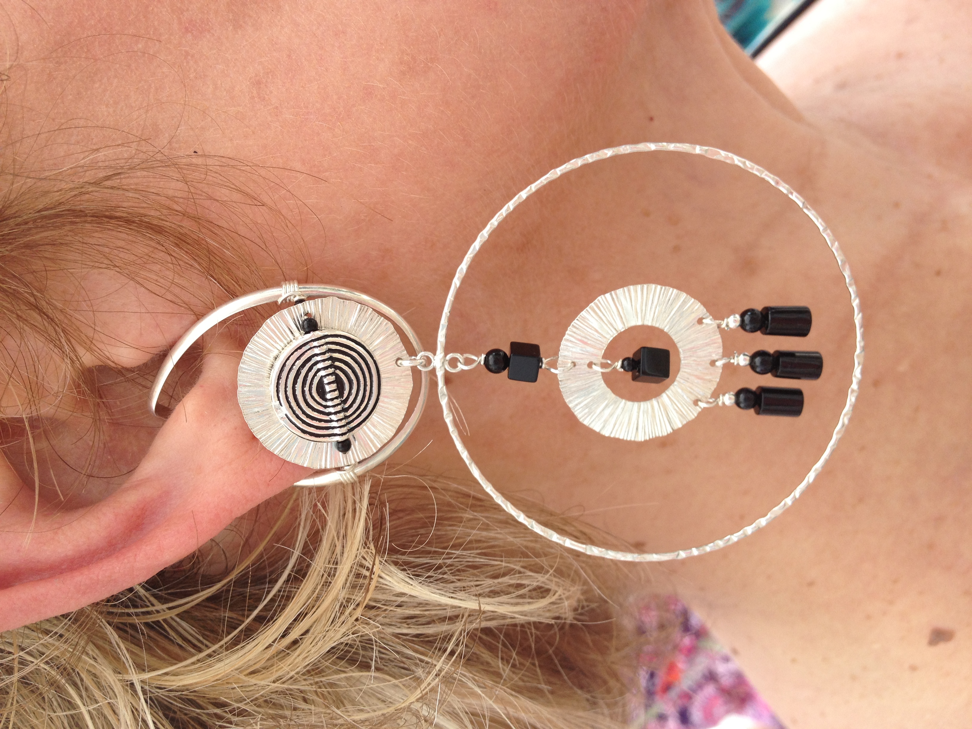 Large Hoop with Black Bead